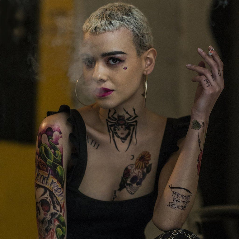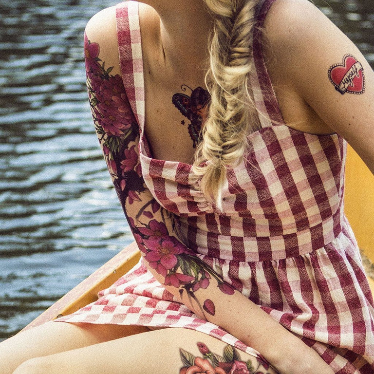 A daring yet delicate red rose design made for underboob placement. The jewel-accented stems enhance curves with a luxurious edge. Hypoallergenic & water-resistant for 5-day wear—perfect for festivals or intimate moments. Apply with confidence, remove without regret.